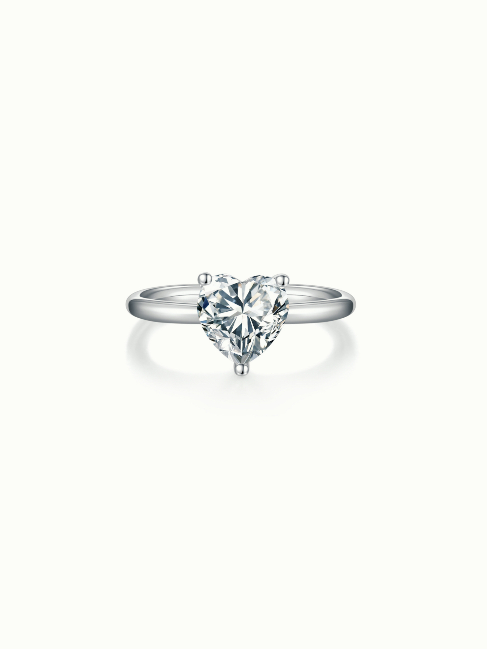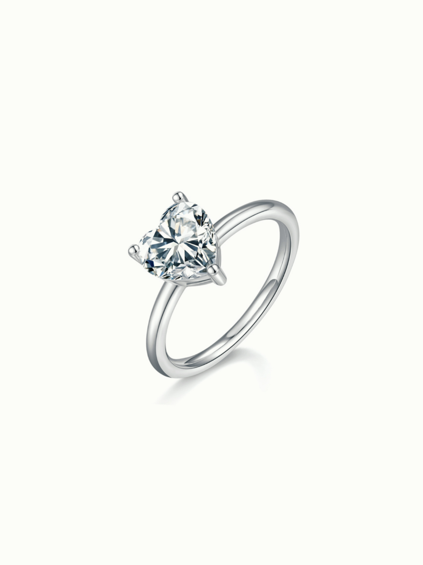 The graceful curves heart shape moissanite capture both tenderness and strength. Available in larger carat, this ring radiates brilliance with every movement. Crafted in White Gold Vermeil and set with world-class moissanite.