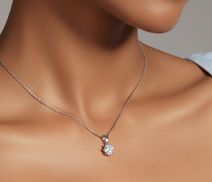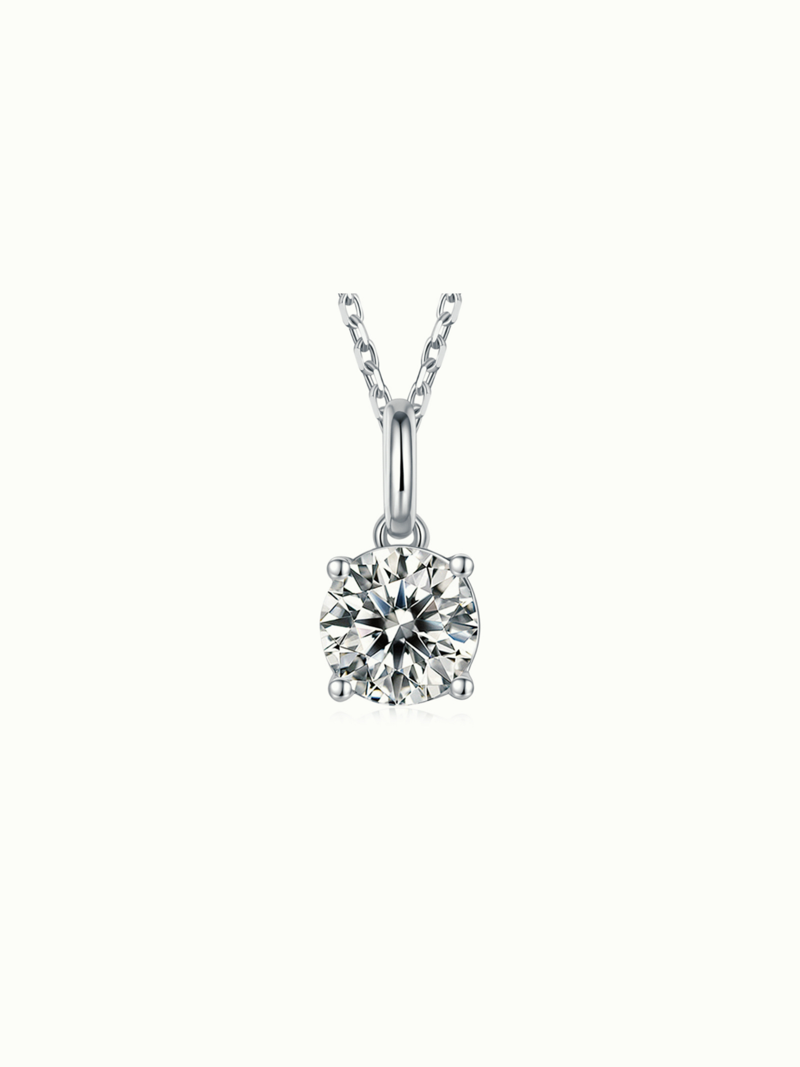 The round brilliant cut moissanite captures timeless radiance in perfect harmony. Its subtle fire reflects composure and grace. Hand-set in White Gold Vermeil with world-class moissanite, it celebrates elegance that endures.