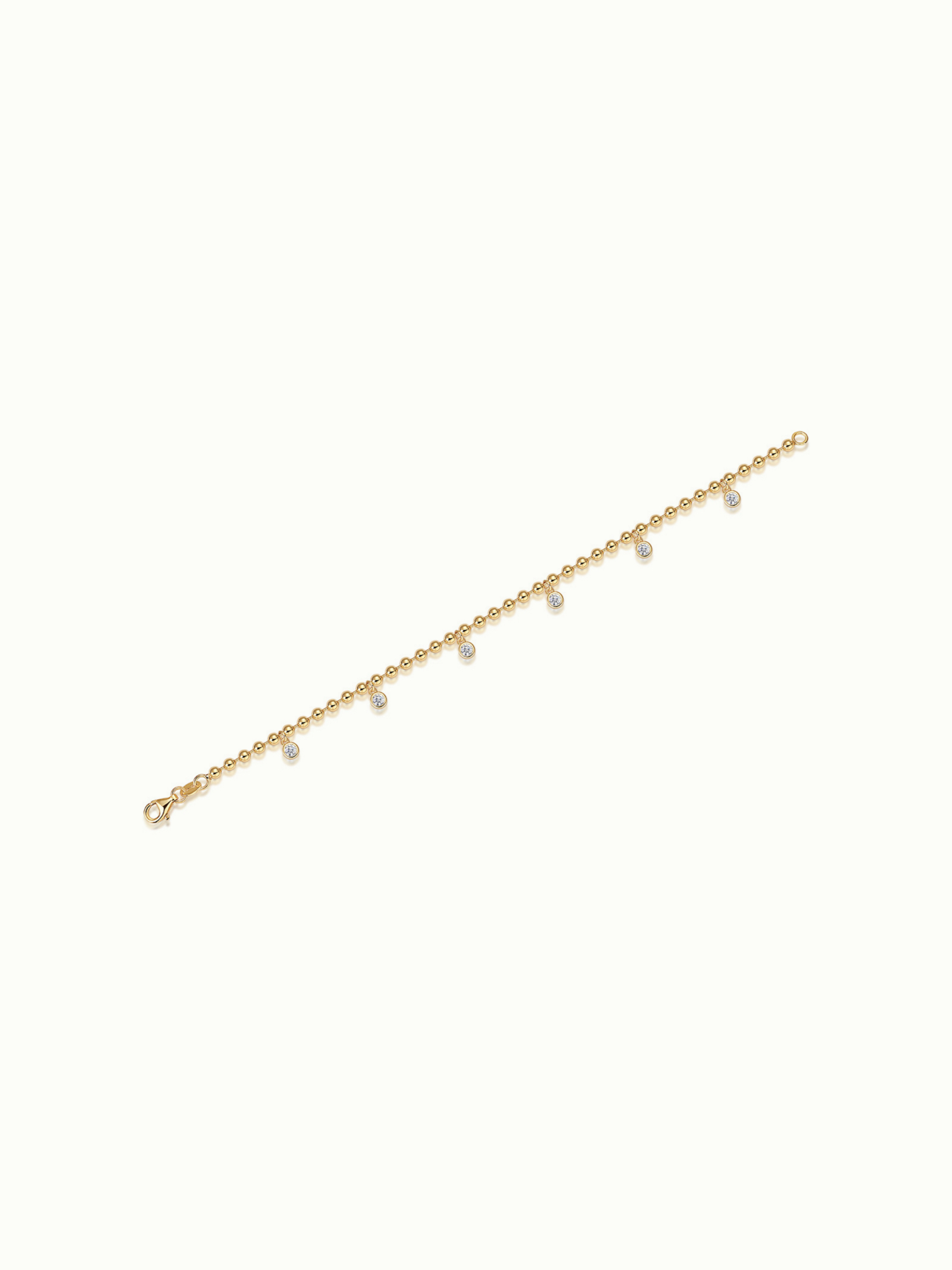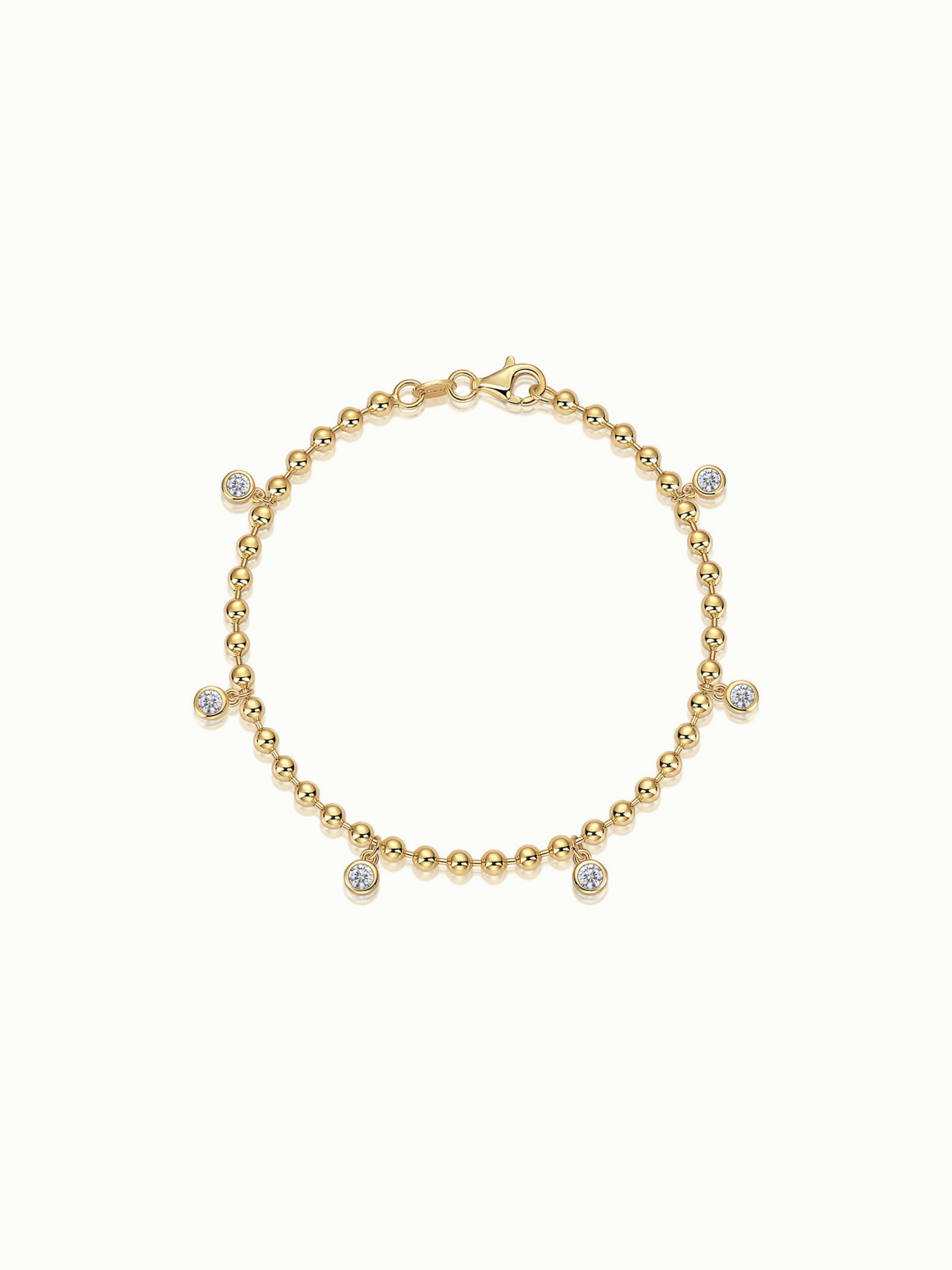 delicate moissanites punctuate a strand of polished gold vermeil beads, catching the light with every movement.
